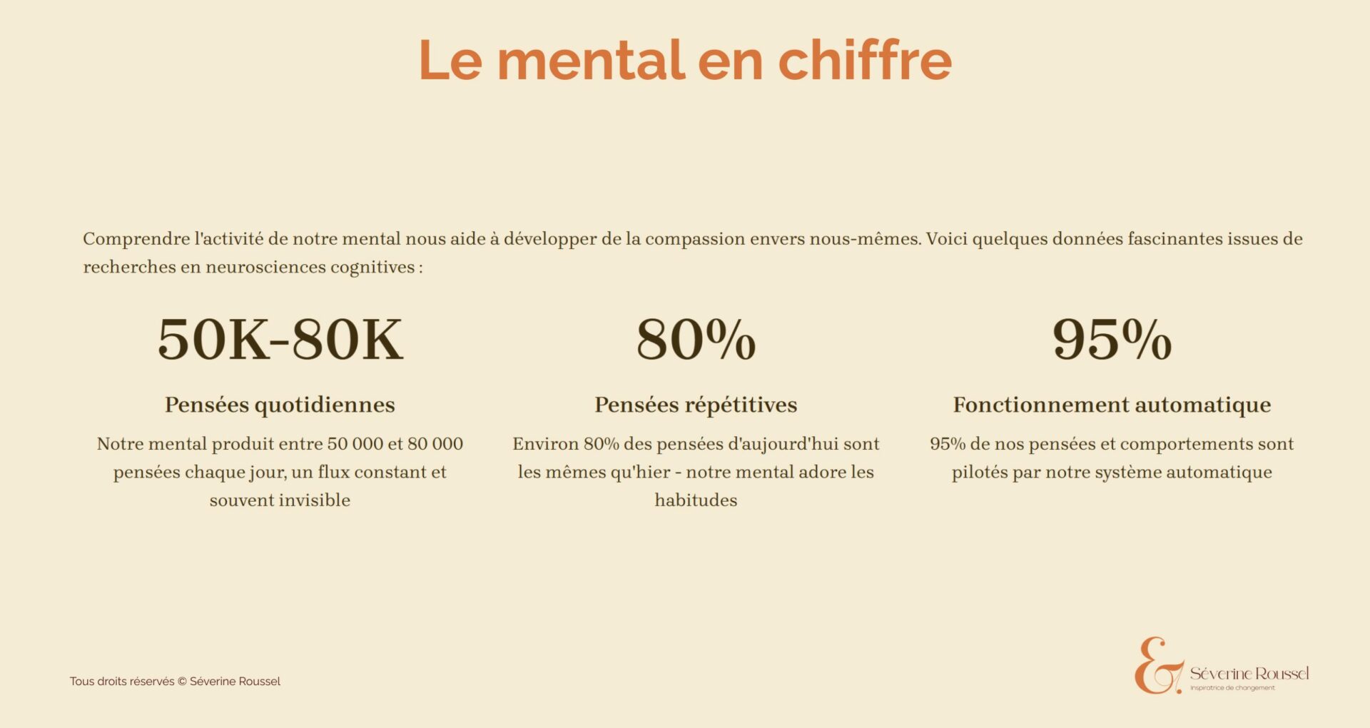 Autrement dit, quand le mental est « au repos », il travaille souvent contre nous. Il rejoue des situations difficiles. Il anticipe des échecs qui n’ont pas encore eu lieu. Il compare, il jauge, il évalue, généralement de façon défavorable. Ce n’est pas un défaut de caractère : c’est la configuration par défaut d’un cerveau humain dont l’évolution l’a programmé pour détecter les menaces en priorité.