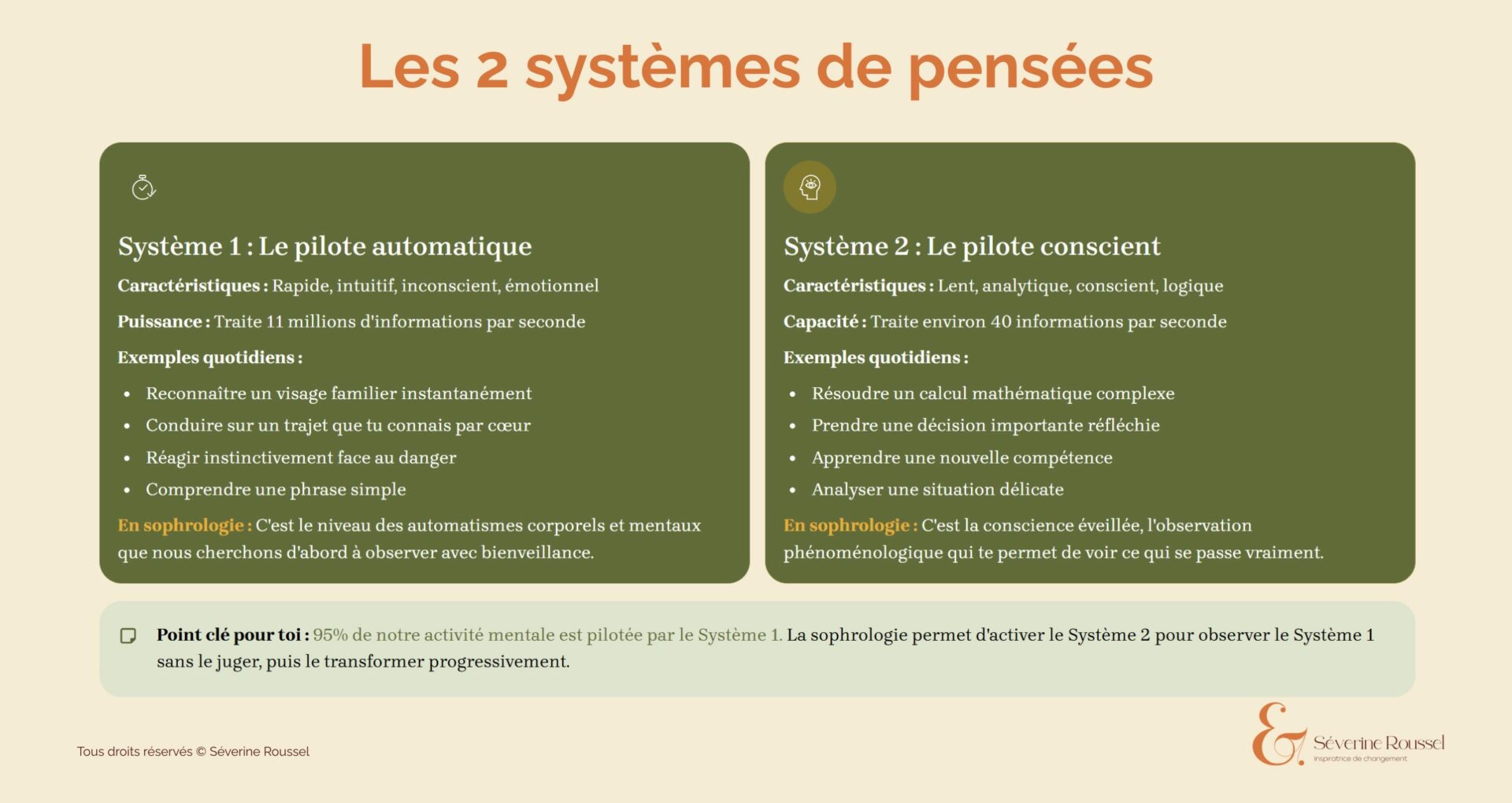 Pour la sophrologie, cette distinction est précieuse. Elle explique pourquoi raisonner avec quelqu’un ne suffit pas à transformer ses croyances. Si la conviction vient du Système 1 : du corps, des émotions, de la mémoire implicite, c’est là qu’il faut aller travailler.